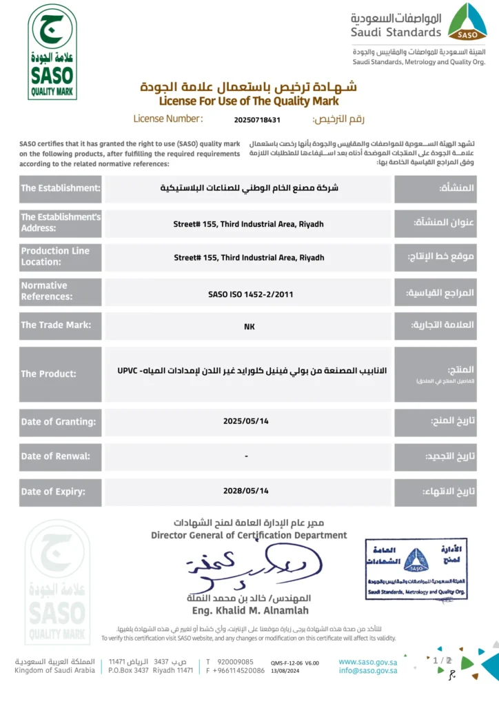 At National Kham Plastic Factory, quality is not just a standard — it is our commitment. Our operations are certified by reputable international and local bodies that assess manufacturing excellence, safety, and compliance. These certifications validate our efforts to deliver durable, safe, and high-performance plastic products that meet or exceed customer expectations. From raw materials to final output, our quality management system ensures consistency and continuous improvement.